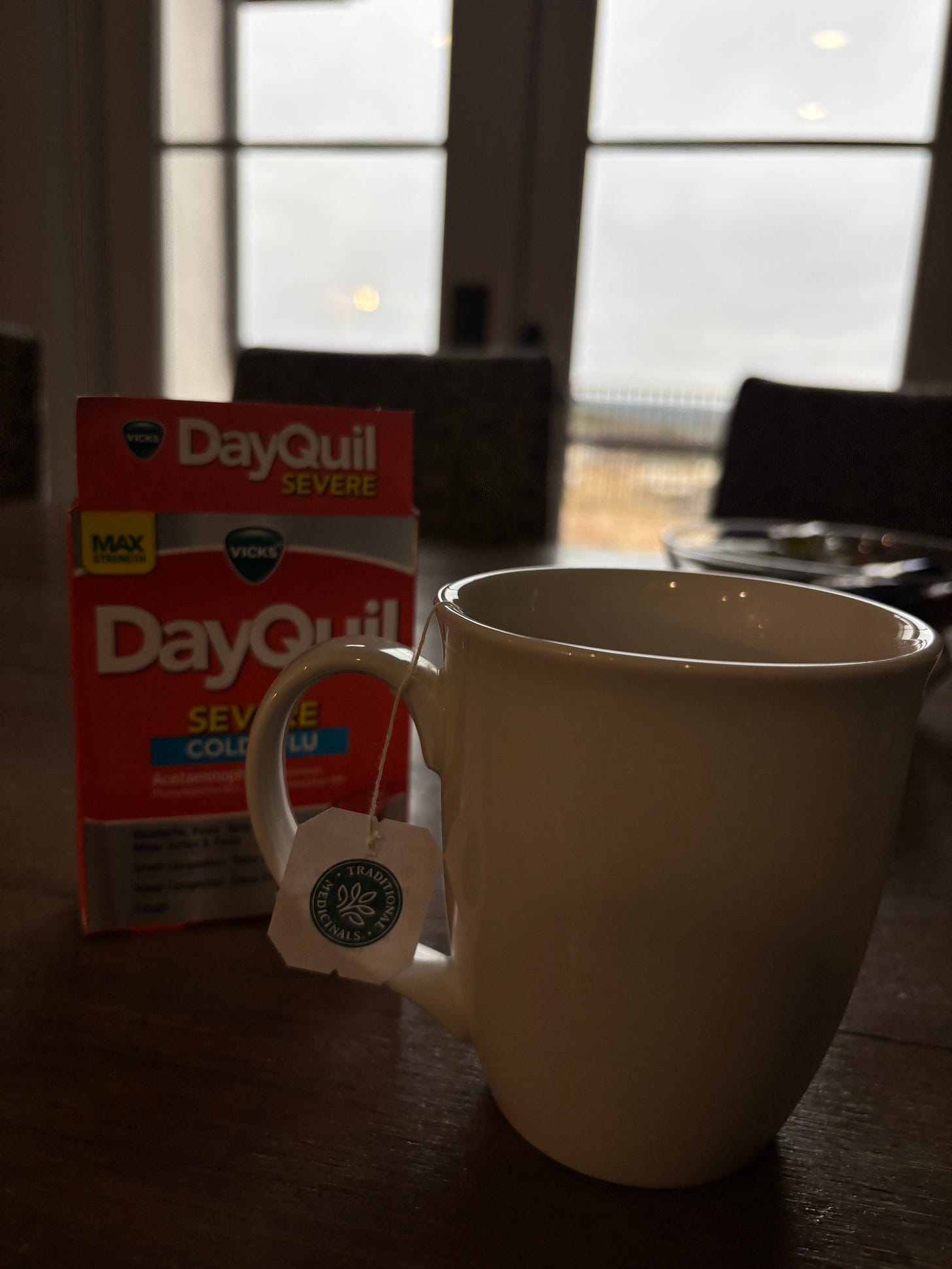 Being sick as an adult makes me realize in some ways how much better it was to be sick as a kid. Maybe it’s because the sense of responsibility to get better is on who is taking care of you–who’s buying the Dayquil, who’s boiling the ginger tea on the stove, who’s rounding up every blanket in the house. But as an adult… you half-consciously drive yourself to work and slap on a mask and hope you can get through the shift without making a scene because your boss still wants you to come in. And then on the way home you pass by a CVS and grab whatever seems cheapest off the cold and flu shelves–thank God for that ExtraCare discount.